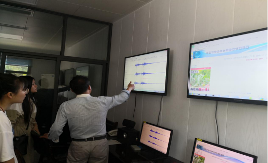 在地震台工作人员的带领下,学生们饶有兴致地参加了地震台的各种仪器设备,聆听了地震台的讲解员关于地震知识的介绍,观看了防震减灾科普视频。