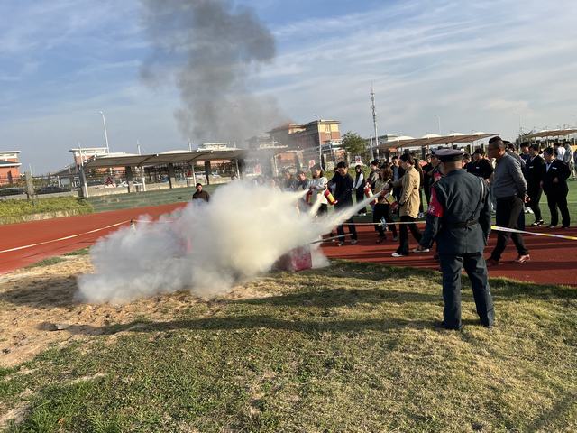 为进一步强化师生消防安全意识,提高学校应对突发火警火灾情况的应变能力,让消防安全应知应会入脑入心。根据学校消防宣传月工作部署,11月8日下午,学校在体育场开展消防灭火演练。
