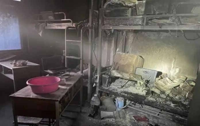【案例7】2020年9月30日,海南一高校宿舍突发大火,大火很快吞没了整个宿舍。据该校后勤人员反馈,事件起因疑似宿舍学生违规使用违规电器,着火后引燃蚊帐,火势迅速蔓延开来。