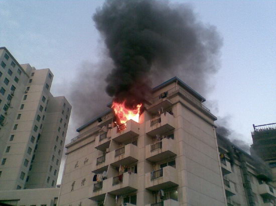 【案例9】2008年11月14日早晨6时10分许,上海商学院徐汇校区宿舍楼602女生寝室失火,过火面积达20平方米左右。因室内火势过大,4名女大学生从6楼寝室阳台跳楼逃生,不幸当场死亡。失火原因为使用违规电器电热棒,水烧干后起火造成火灾,阻塞逃生道路,结果四个学生试图从阳台逃生导致死亡。
