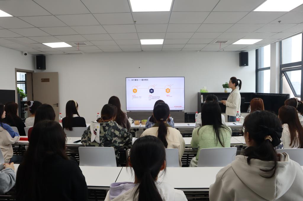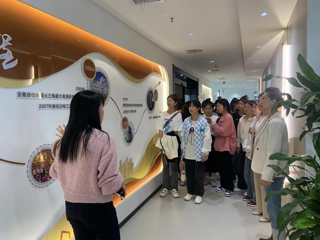 在康佳集团白电直播基地,同学们认真了解直播流程,包括产品的选择、直播台词的准备、相关短视频的制作、语言表达技巧、灯光、礼仪等各个方面。同学们还观看了直播过程,主播良好的形象、优美的声音、介绍产品的专业程度以及回答观众问题的耐心等给同学们留下了深刻印象。据介绍,康佳集团白色家电直播基地是滁州市首个专业的家电企业大型直播基地,集直播带货、直播品牌和主播IP孵化、短视频内容制作、私域流量运营及电商运营管理等业务内容于一体,并致力于打造成为专业的电商直播服务平台、直播电商示范基地。