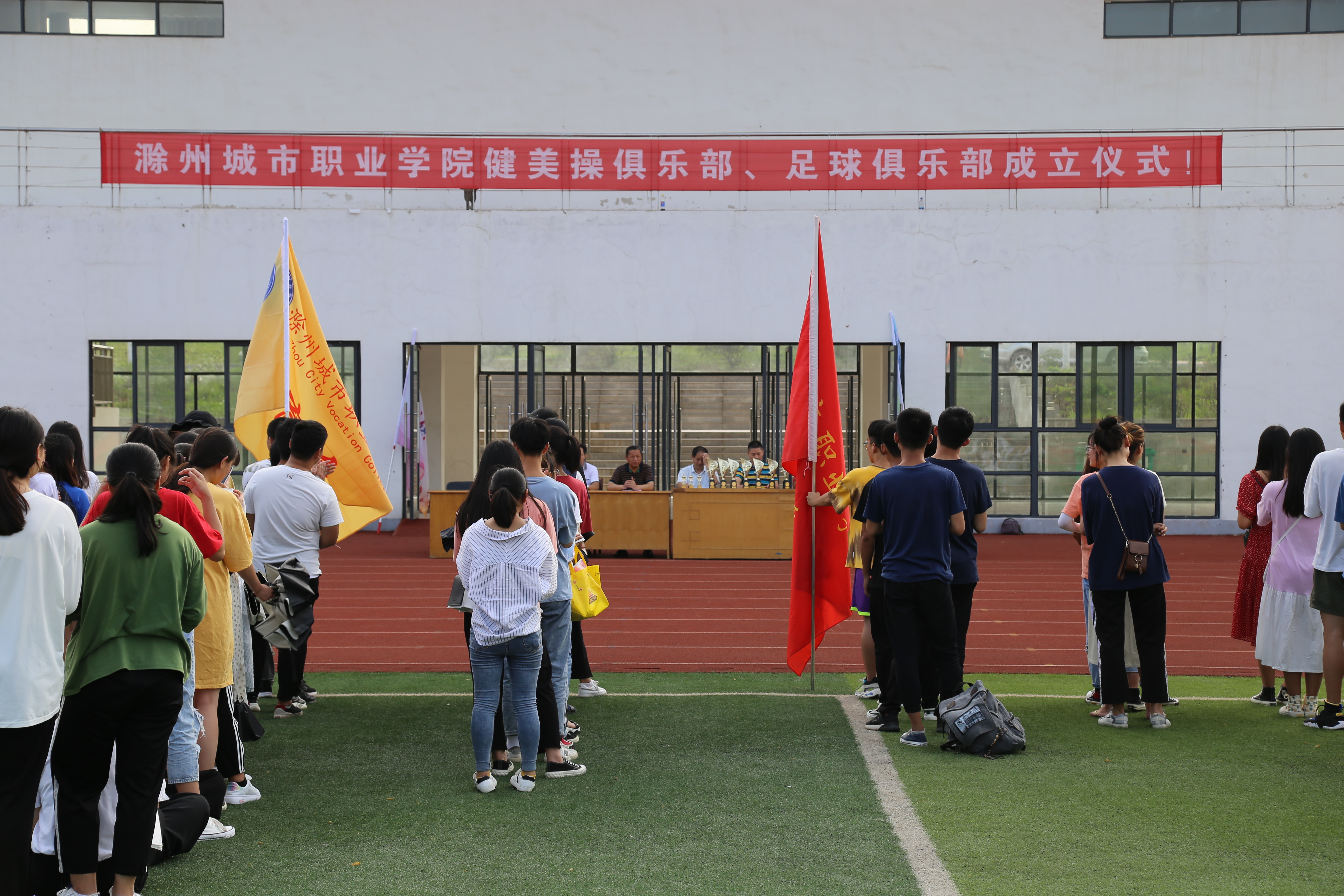 6月26日下午,院健美操俱乐部、足球俱乐部成立仪式在学院塑胶运动场顺利举行。院党委委员、副院长、体育工作委员会主任施向阳,党委委员、教务处处长、体育工作委员会副主任王树青,基础部主任、体育工作委员会副主任何大海,学生处、团委负责人参加上述活动。仪式由院体委秘书许恒正主持。