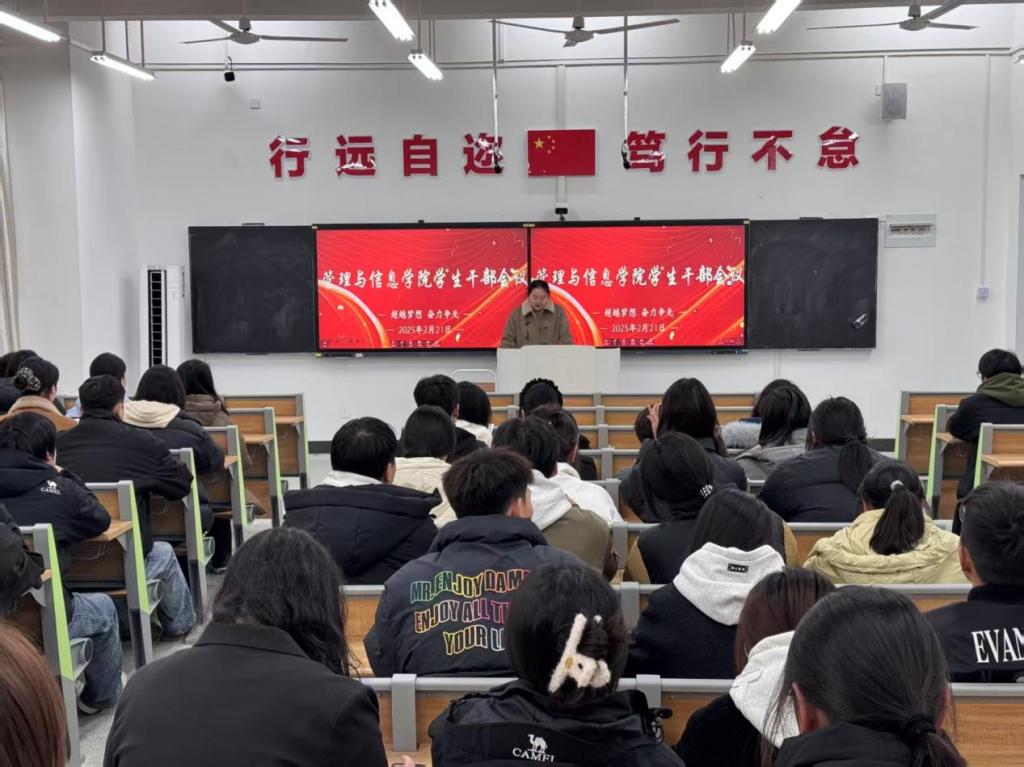 为进一步加强学生干部责任意识,明确新学期的目标,2月21日下午,管理与信息学院成功举办新学期学生干部会议。此次会议由院团总支书记叶媛媛主持,党总支副书记冯曦、各班级团支部书记、学生会骨干成员参加。