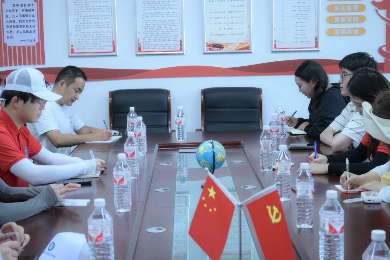 7月2日上午,实践小分队抵达龙山村村委会议室,与滁州大牛文化传媒有限公司负责人杨阳召开座谈会。会上,双方围绕当地特色农产品(如西瓜、辣椒等)的品质优势、全椒非遗酱汁的传承与创新展开深入交流,重点探讨了电商直播助农的可行路径——从产品包装设计、直播话术打磨到平台流量运营,力求通过“互联网+”模式拓宽销售渠道,让优质农产品和非遗产品走出乡村。座谈会上思想的碰撞,为后续实践活动奠定了扎实的合作基础。