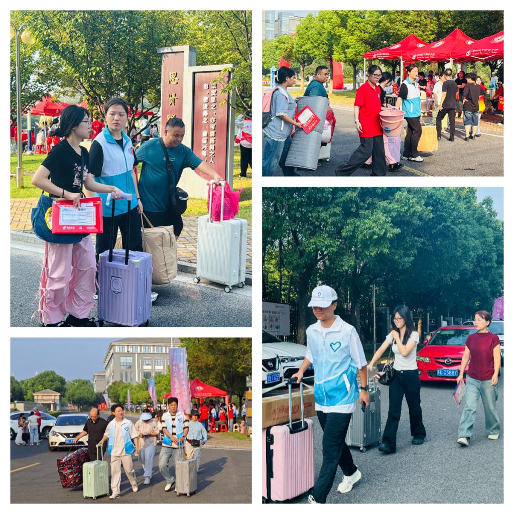 在迎新现场,杏林本草志愿者团队早已整装待发。他们提前熟悉报到流程与校园布局,穿梭于校门、报到点与宿舍楼之间:帮新生搬运行李时,他们肩扛手提毫无怨言;指引路线时,他们耐心细致讲解;遇到突发情况,他们迅速协调解决,用行动诠释着“行李摆渡人”的责任与担当,成为校园里一道灵动的风景线。