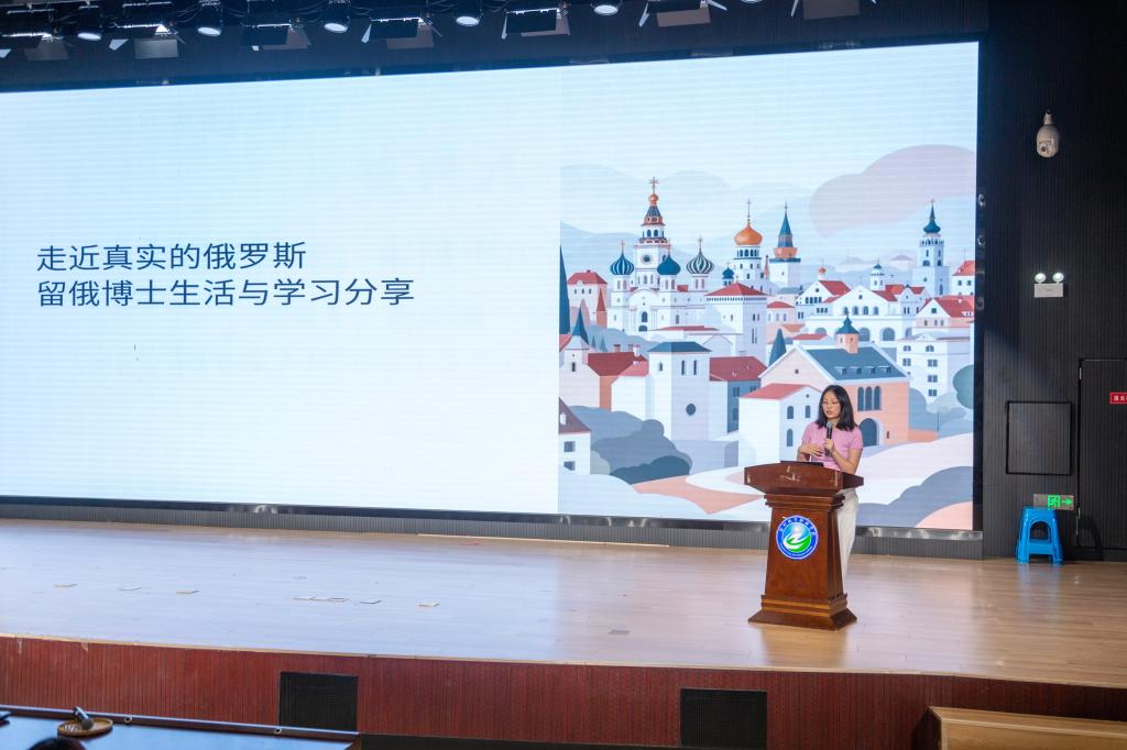 分享环节中,潘文硕、叶子聚焦俄语学习技巧,通过丰富的图片、实例和亲身经历,讲解俄语在实践中的运用技巧,并与现场同学进行互动交流,为中外合作办学专业学生的语言学习与专业发展提供了实用建议。
