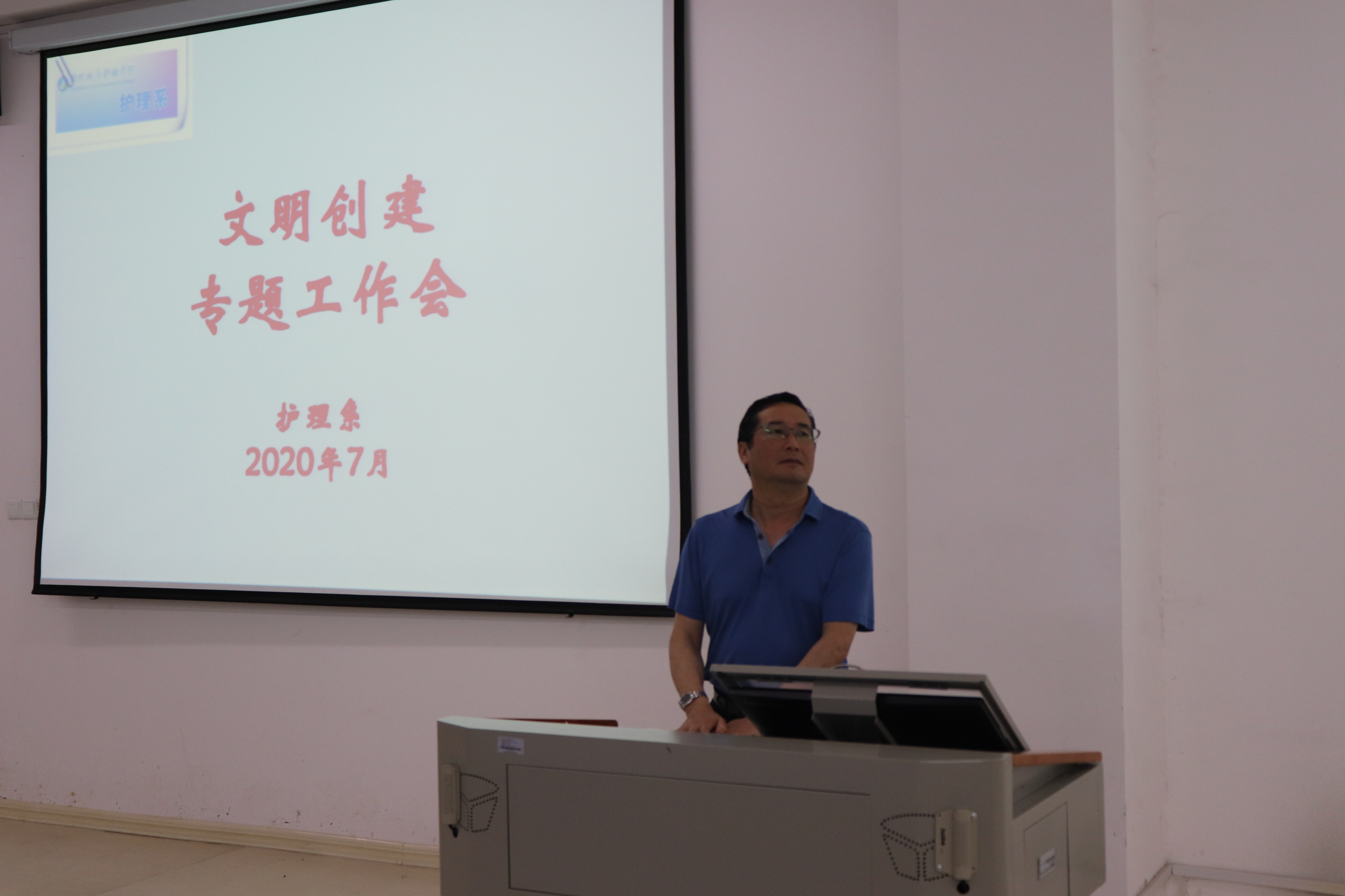 为推进全国文明城市创建和省级“文明校园”创建,带动广大教职工群众自觉遵守社会公德和文明礼仪,7月10日下午,护理系在B3-110召开文明创建专题会。系全体教职工参加会议,系主任章正福主持会议。