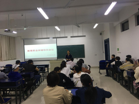 5月13日下午,教育系全体辅导员会议在C1南206教室召开,会议由系党总支副书记陈之娟主持,系学管秘书和全体辅导员参加了会议。