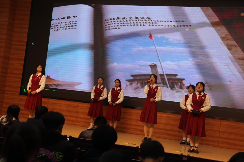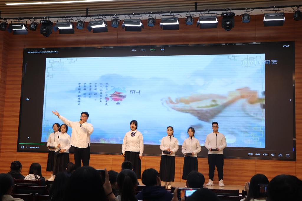 比赛现场,同学们或慷慨激昂或温情婉转,辅以手势、队列、服饰等不同的形式,诵读了《致先辈》、《东方》、《青春中国》、《百年征程》、《少年中国说》、《盛世中国》等作品,唱响了爱党爱国爱社会主义主旋律,讲述建党百年光辉历史,赞颂共产党人可歌可泣的感人故事,弘扬共产党人“不忘初心,砥砺前行”奋斗精神,为大家带来了一场精彩的视听享受。