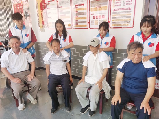 为了给党旗添彩,为党徽增光,为群众办实事,党员师生开展健康义诊活动。通过推拿、问诊等方式,提高人民群众的健康意识,帮助其掌握适用的健康生活常识和专科防病知识,增强群众维护自身健康的能力。