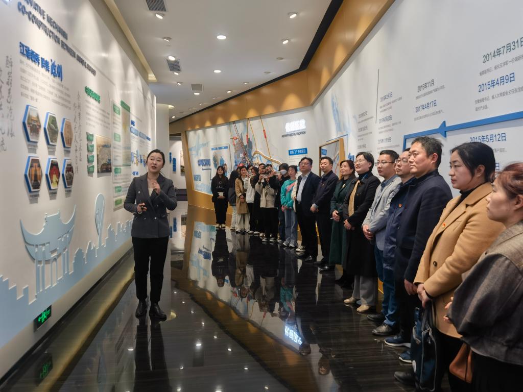 考察团成员首先参观中新苏滁高新区规划馆。讲解员为考察团介绍了中新苏滁高新技术产业开发区的情况。考察团成员在各展厅前驻足观摩,表示大开眼界。