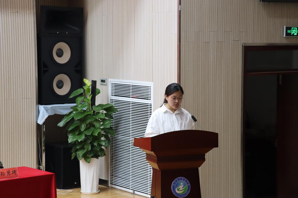 受表彰学生代表王婉月上台发言,她表示,将不辜负学校和老师们的辛勤培养,通过阅读获取更多的知识,增长能力本领,自觉肩负起实现中华民族伟大复兴中国梦的历史使命,争做新时代文明大学生。
