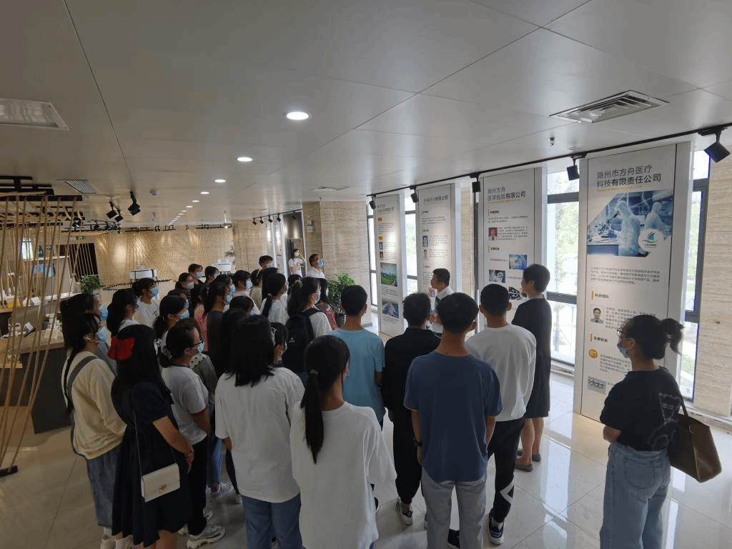 方舟生物集团负责人罗总带领同学们参观了方舟生物集团的实验室和工作环境,介绍了集团的情况和相关正在开发准备投入临床使用的药品。同学们感触良多,职业认知提高,并萌生了对药剂的学习兴趣。