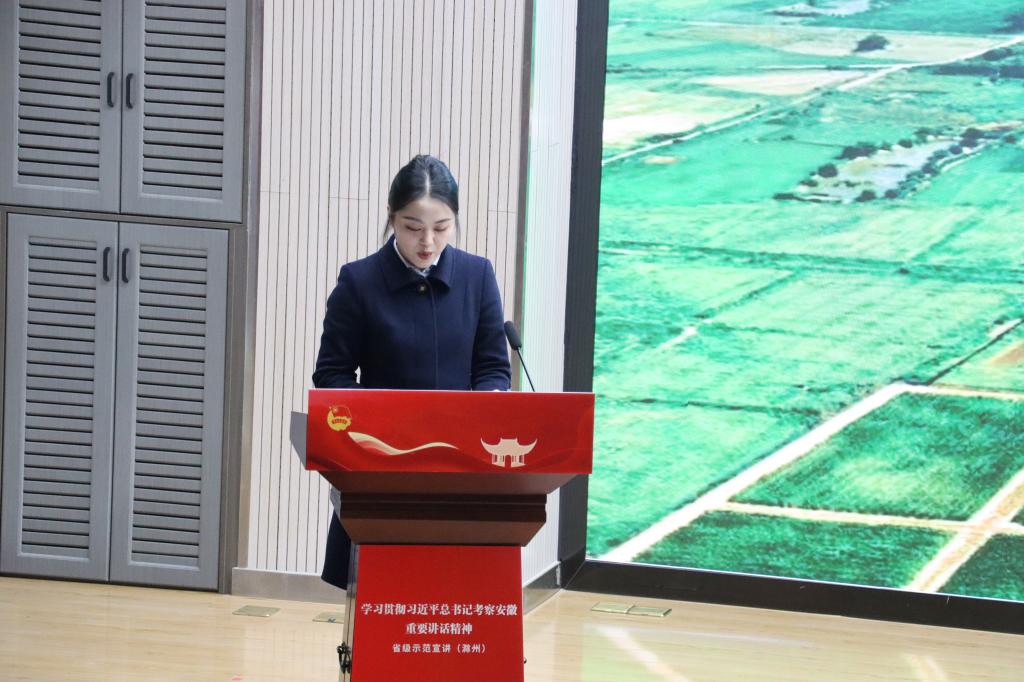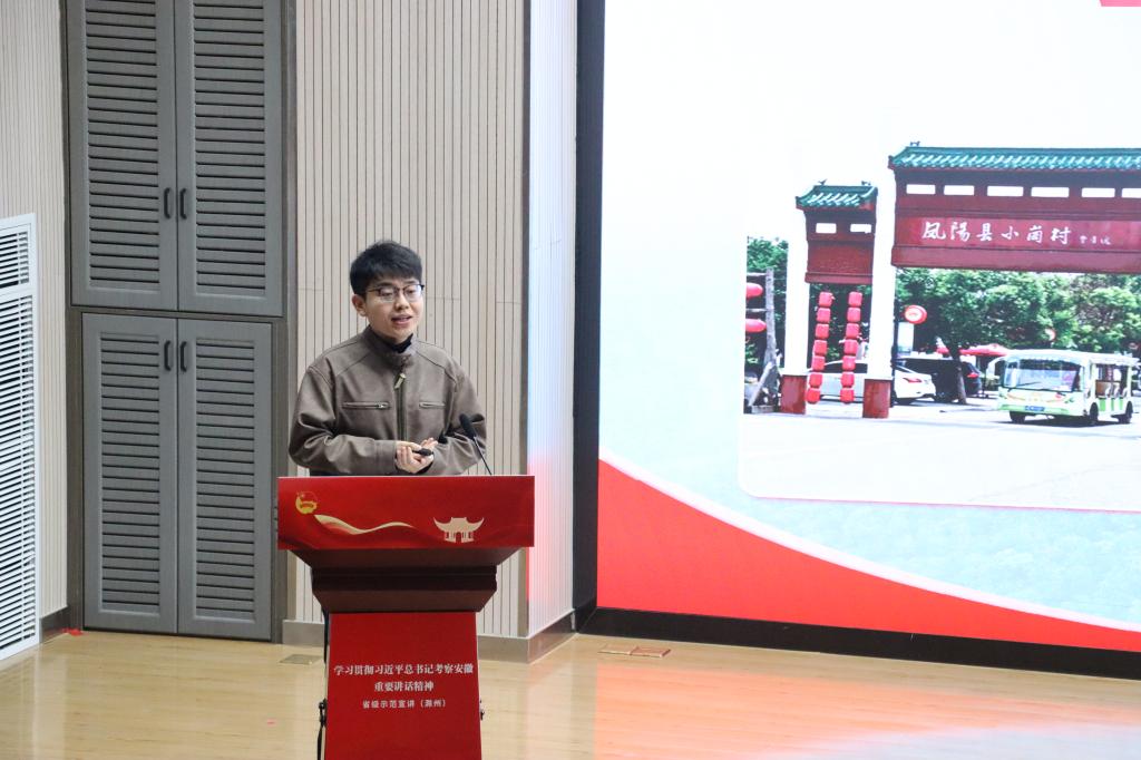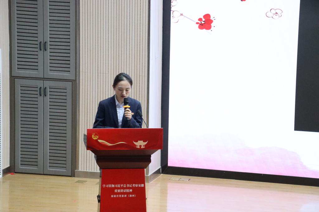 随后,六位宣讲员分别围绕《共绘徽风皖韵 唱响青年之声》《文旅融合新征程 滁州青年话担当》《文旅助力乡村振兴的小岗故事》《领航汽车“智”造 见证安徽速度》《从中国传统文化中汲取事业前进的智慧》《中华传统文化与新时代青年的双向奔赴》等主题开展宣讲,宣讲内容贴近实际、重点突出,让参加人员对学习贯彻总书记考察安徽重要讲话精神有了更全面的认识、更细致的理解、更深刻的把握。