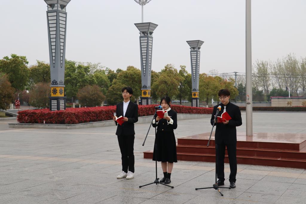教育学院学生代表诵读《红色家书——赵一曼就义前给儿子的遗书》。红色家书,情真意切,既反映他们对家人的深情、对子女的教诲,更展现了无数的共产党人和中华儿女用生命和鲜血铸就的坚韧不屈、不怕牺牲的民族精神。