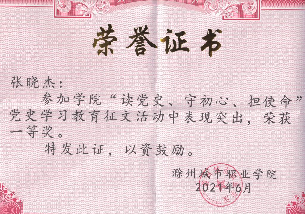 继续教育学院副院长张晓杰参加学院党史学习征文比赛,获得一等奖,2021年获城院最美教师称号,撰写的理论文章《聚焦职业教育发展,助力区域经济腾飞》被滁州市政府资料《滁州工作》2021年09期全文刊载。教学秘书孟红军2019年获得“优秀教育工作者”称号。