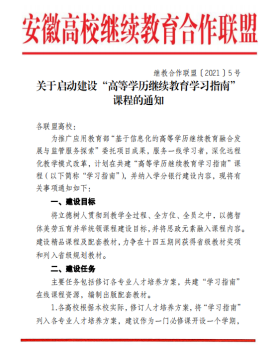 2021年,继续教育学院参加省教育厅指导,省继续教育网络园区组织编写的《高等学历继续教育学习指南》,并作为副主编单位,推动继续教育改革成果运用。2020年底,与安徽开放大学合作的《政府引领 高校联动 构建高职扩招线上教学网络园区服务新模式》获得安徽省线上教学成果奖一等奖。