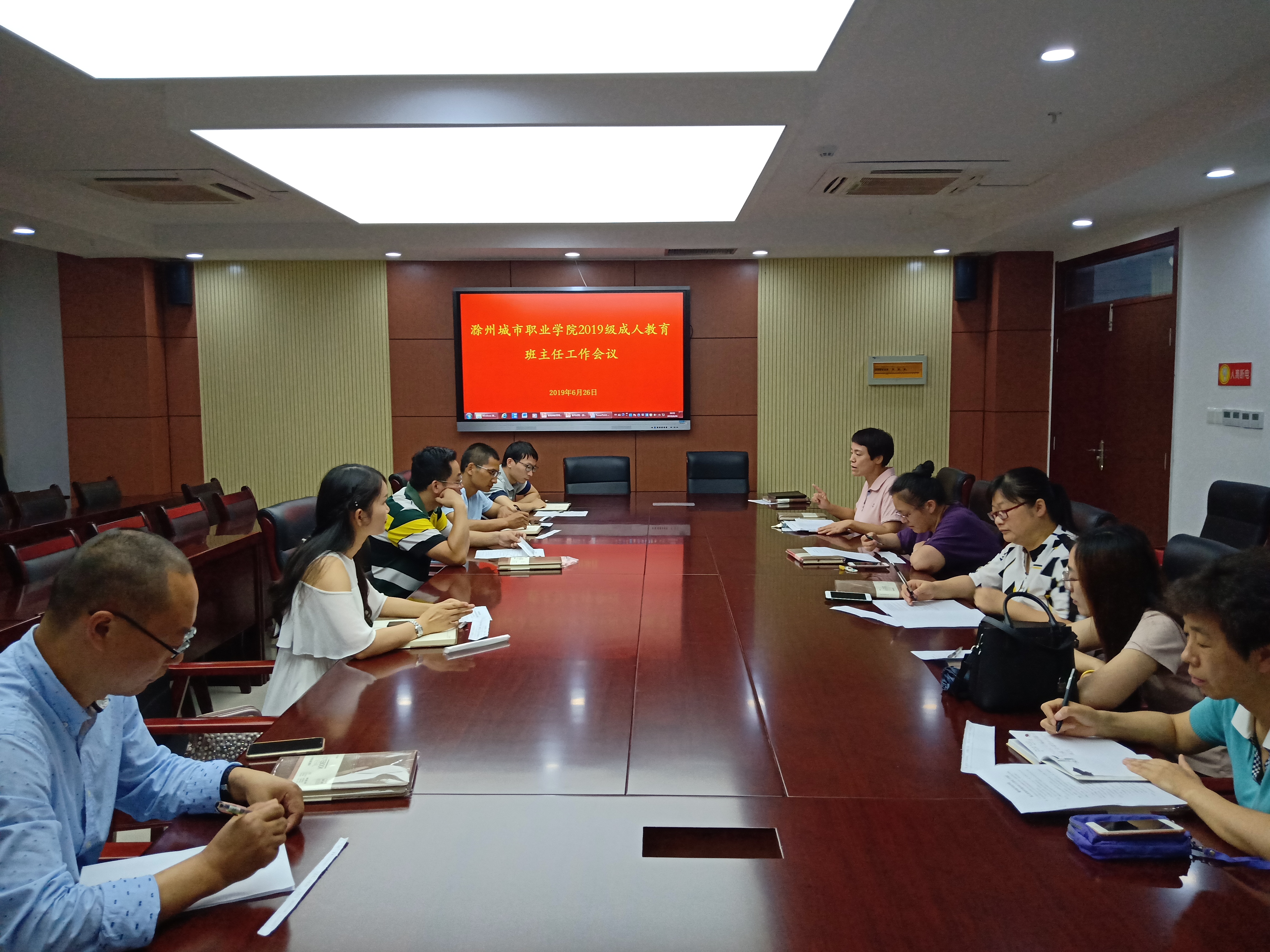 6月26日下午16时,在图文中心第四会议室,继续教育中心负责人许梅召开2019级成人教育班主任会议。共有2019级的11名成教班级的班主任出席了此次会议。