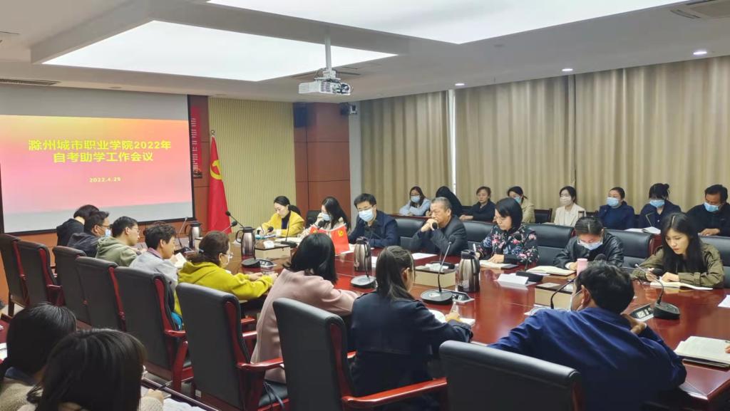 为切实做好自考助学工作,提高自考办学质量,确保疫情期间在校生自考助学工作平稳有序开展。4月29日下午,学校2022年自考助学工作会议在第三会议室召开。党委委员、校领导施向阳,继续教育学院院长许梅、副院长张晓杰,教育学院、护理学院、管理与信息学院、艺术与传媒学院自考助学负责人,全体自考班主任及任课老师参加会议,会议由许梅主持。