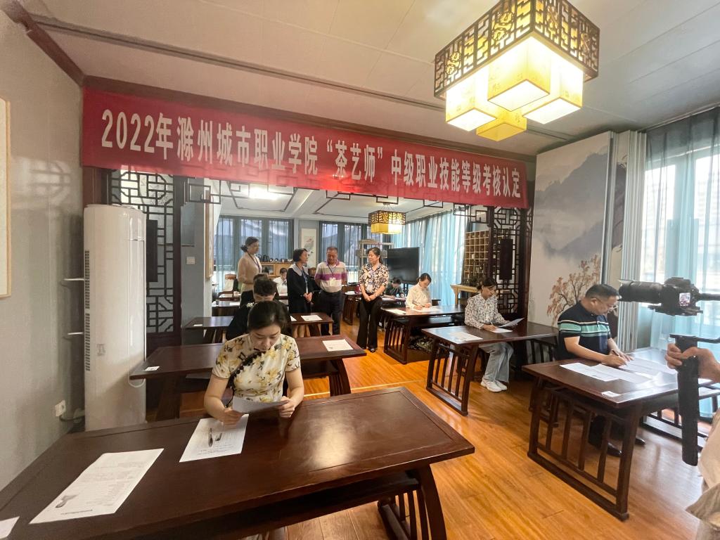 为进一步促进滁州市茶行业健康发展,提升茶文化发展和传播,9月23日,我校组织开展职业技能等级考核认定工作,本次共11人参加考核认定,认定工种为茶艺师,认定等级为4级(中级工),认定地点在与我校联合开展茶艺师培训的富苑茶社。校党委委员、校领导施向阳,市人社局鉴定中心主任姜梦莲、继续教育学院院长许梅参加巡考。