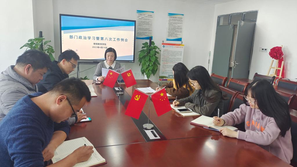 4月10日上午,继续教育学院召开本学期部门政治学习暨第八次工作例会,院长许梅、副院长孟红军及全体工作人员参加会议,会议由许梅主持。