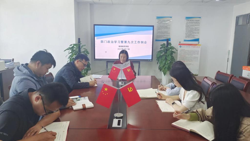 4月17日上午,继续教育学院召开本学期部门政治学习暨第九次工作例会,院长许梅、副院长孟红军及全体工作人员参加会议,会议由许梅主持。