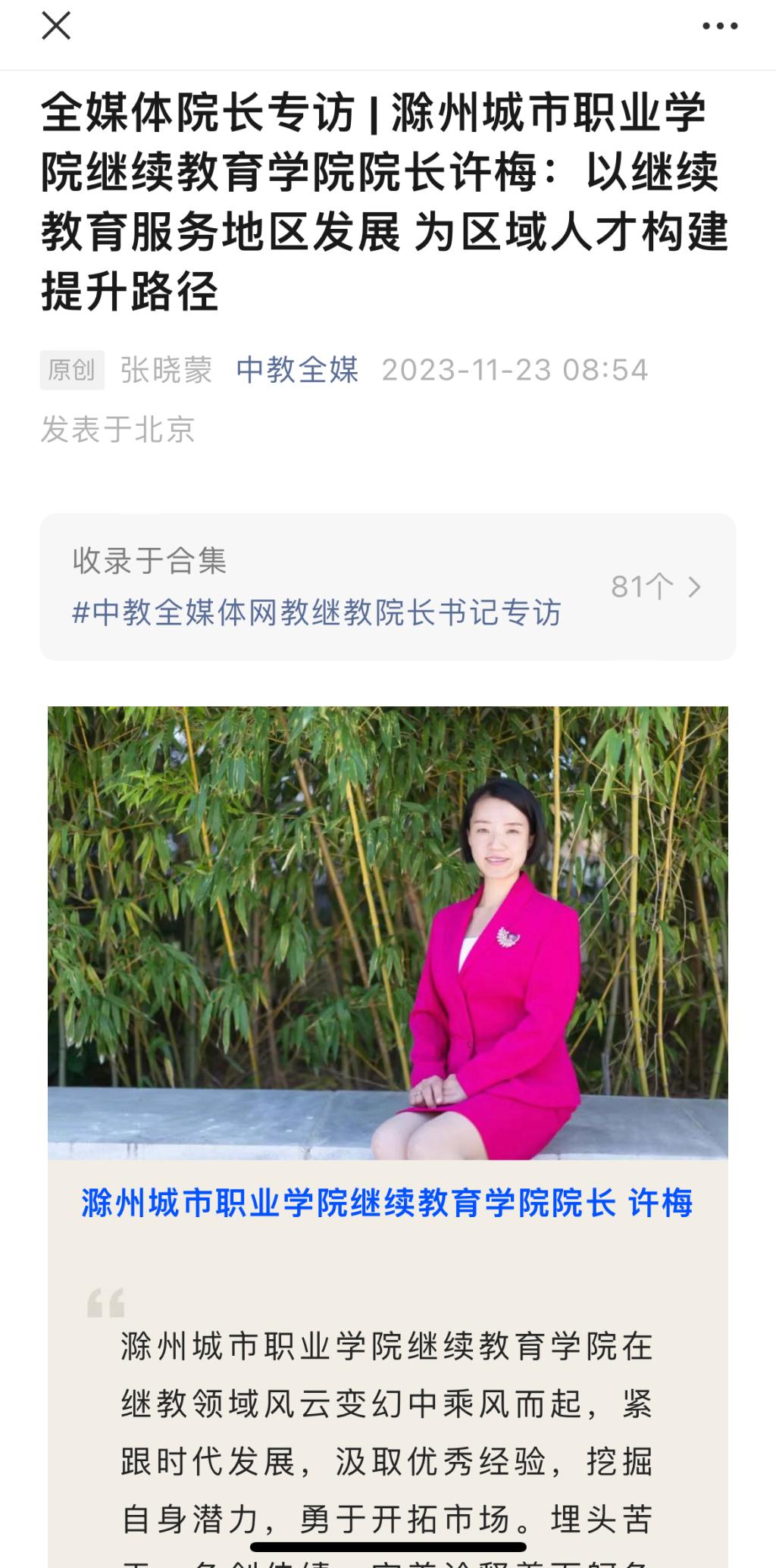 11月23日,继续教育学院院长许梅接受中教全媒体专访。
