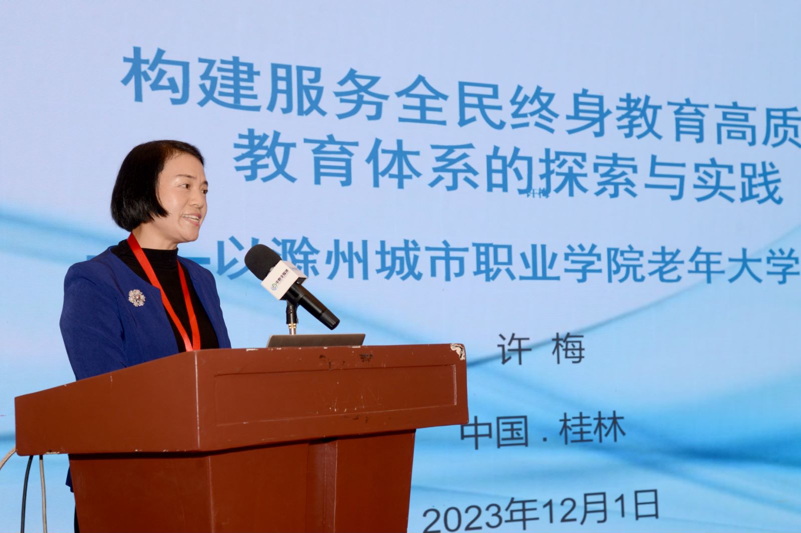 为促进高校继续教育与职业教育数字化建设,推动高校继续教育高质量发展,11月30日—12月1日,由中教全媒体主办的2023高校继续教育与职业教育创新发展研修班暨老年教育论坛暨优秀案例分享会在桂林举办,全国各地的专家学者、高校继续教育相关部门负责人参加会议,我校继续教育学院院长许梅代表学校参会。