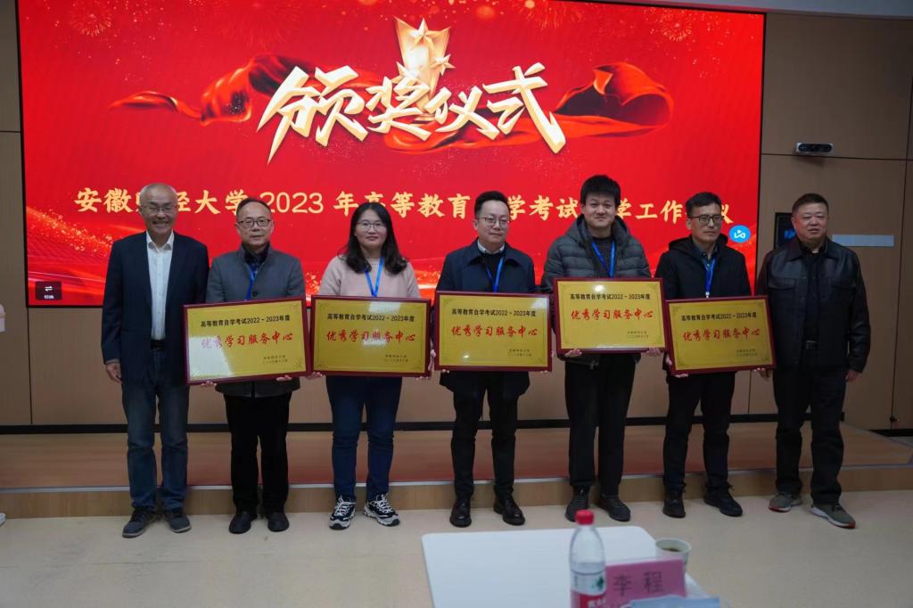 为推动高等教育自学考试事业的健康发展,部署2024 年度自考助学的各项工作,12月9日-10日,安徽财经大学主持召开2022-2023 年度高等教育自考助学工作会议。会上,我校获得2022-2023年度“优秀学习服务中心”并受到表彰,祝贺!
