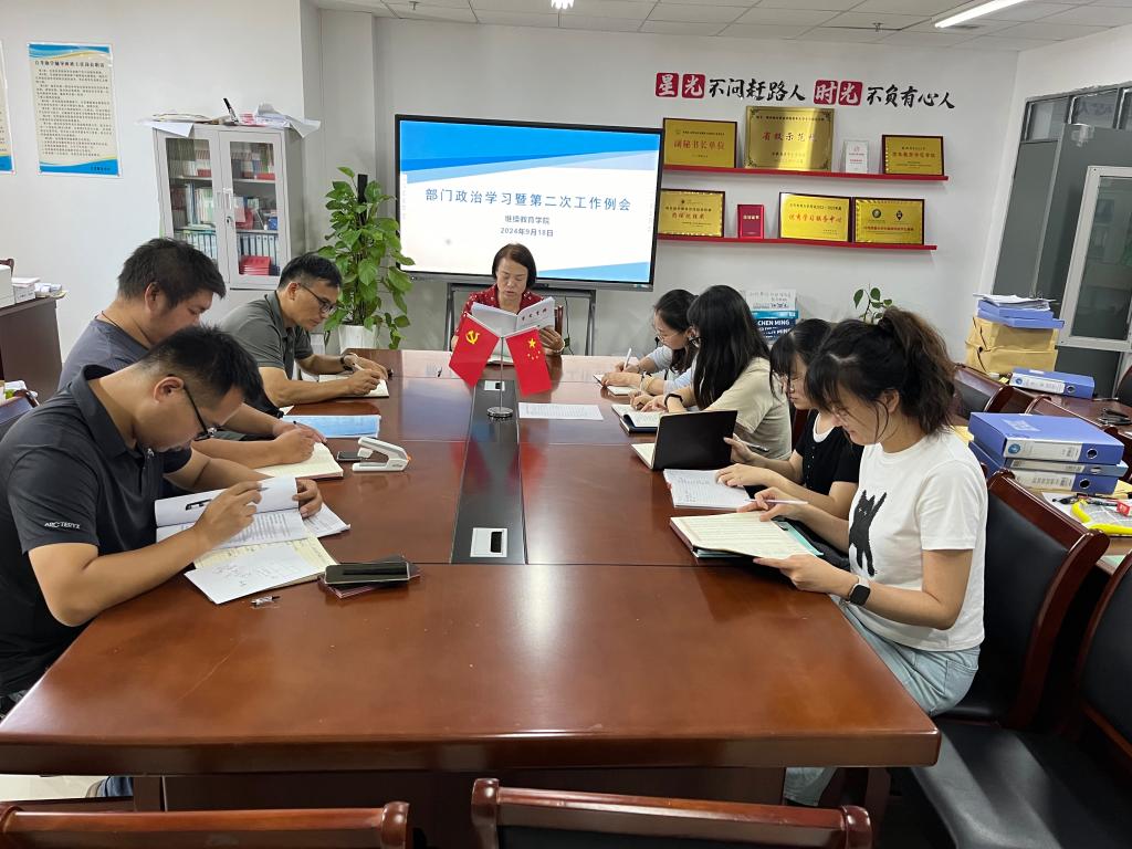 9月18日上午,继续教育学院召开本学期第二次政治学习暨部门例会,院长许梅、副院长孟红军、学历科科长汤雷、国际交流中心办公室主任张静及全体工作人员参加会议,会议由许梅主持。