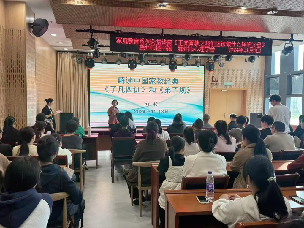 随后,许梅带来《解读中国家教经典<了凡四训>和<弟子规>》的讲座,强调传统文化中诸如“仁爱”“孝道”“诚信”等核心价值观念在家庭教育中的重要性,深入探讨了这些传统文化元素如何应用于现代家庭教育中,以促进家庭成员的心理健康和全面发展 。