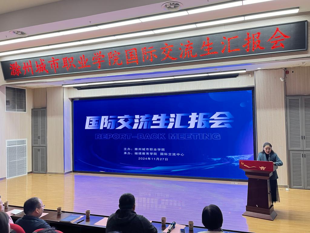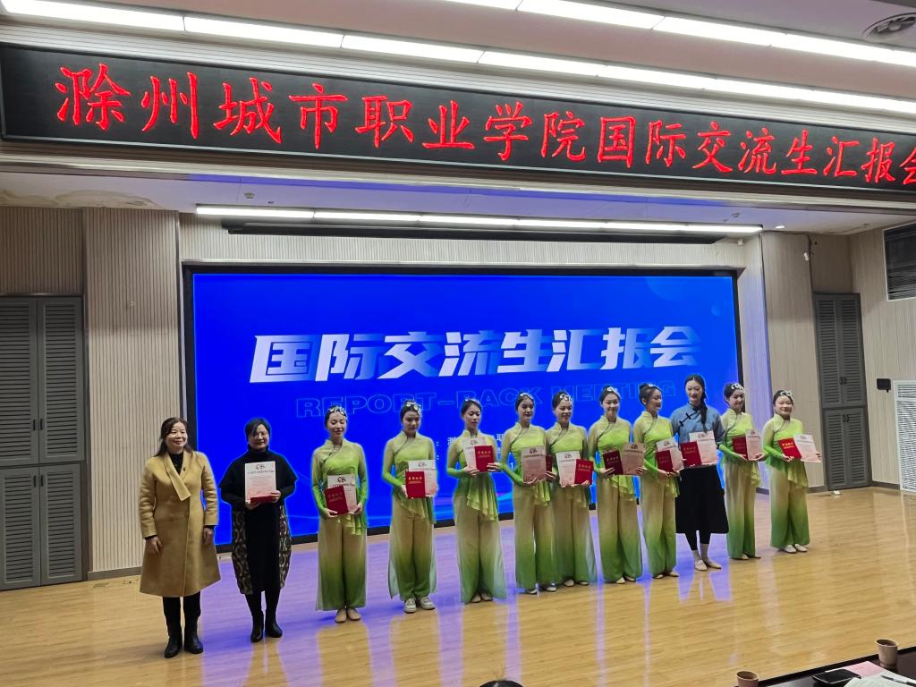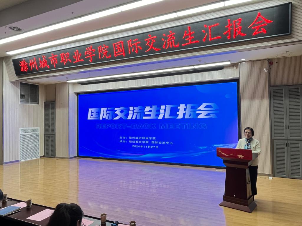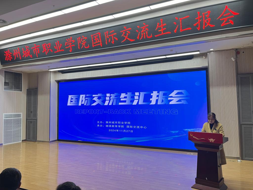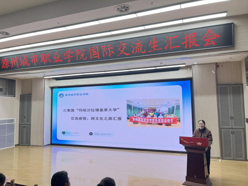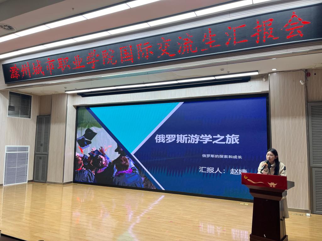 汇报会上,交流师生们依次走上讲台,分享他们在异国他乡的学习、生活点滴。王李艳首先分享她在泰国的交流学习感悟,希望学校今后能够加强中外合作交流来提升教师的国际视野,并强调了海外交流学习过程中提升英语沟通能力的重要性;汪玉玲声情并茂地讲述了她在国外一个月的学习和收获,她最大的收获是参加国外的专业课程学习及学术研讨会,国外的教学模式对于她回国后的教学有着很大的启发和帮助,希望此次交流学习能成为新起点,为促进国际交流与合作搭建更加坚实的桥梁;赴泰交流生代表、校学生会主席葛锐分享了他在泰国学习交流活动中的见闻与收获,不仅学习到了新的语言,感受到了不同国家的文化,还交流了专业知识,锻炼了能力;23早教高专3班杨文婕生动讲述了她在泰国传播中国文化的难忘经历,展现出跨文化交流的魅力与价值;护理学院学生会主席赵婕说俄罗斯高校的实践教学环节让她对专业知识有了更深入的理解与应用能力;23检验高专2班侯梦菲表示在国外她不仅学习到了丰富的专业知识,还和当地的学生建立的深厚的友谊;我校毕业生19药学初专班宗洺帆,通过赴俄一个月的交流学习,拓宽了自己的视野,回国后了解到我校和俄罗斯叶列茨基国立大学开展了本硕联合培养项目,今年6月毕业后,就前往俄罗斯攻读本硕留学项目。他精心制作一段视频,分享了他在俄罗斯留学期间的精彩瞬间;花鼓队员代表王小文和吴静分享了她们在俄罗斯进行文化交流期间的所见、所闻、所感,并表示今后会用更加饱满的热情和扎实的技艺,用非遗传统文化讲好中国故事。