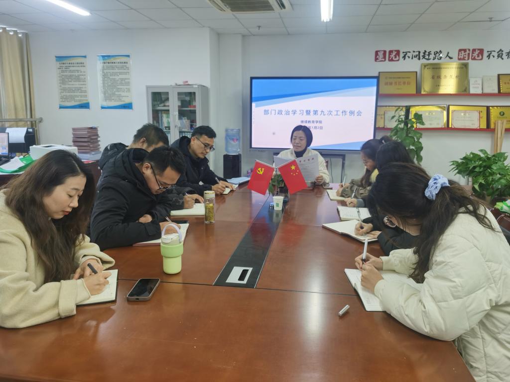 为进一步加强部门人员的思想政治教育,提升工作质量,推动各项工作有序开展。1月2日上午,继续教育学院召开本学期第九次政治学习暨部门例会,院长许梅、副院长孟红军及全体工作人员参加会议,校妇联副主席李磊列席了会议,会议由许梅主持。
