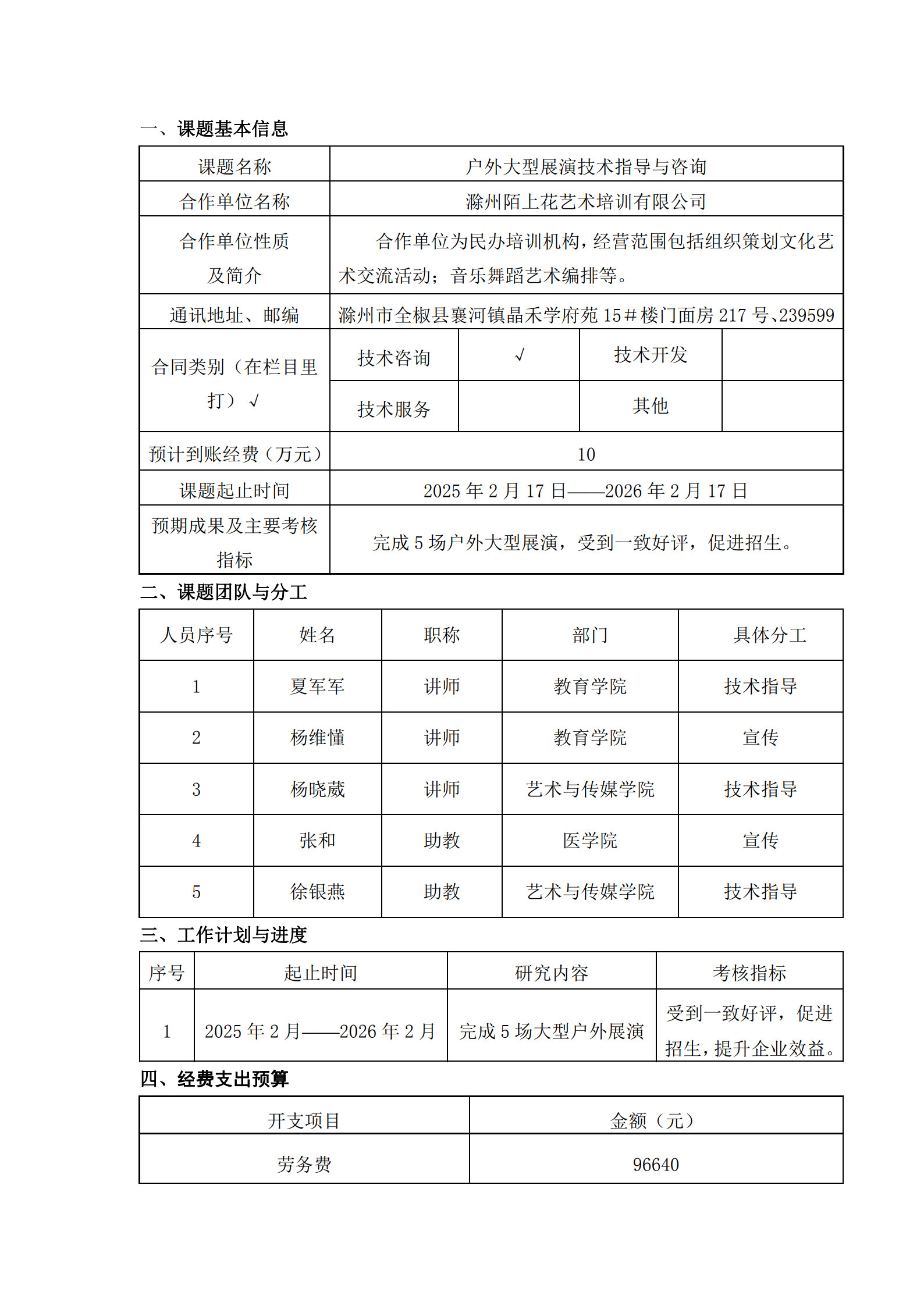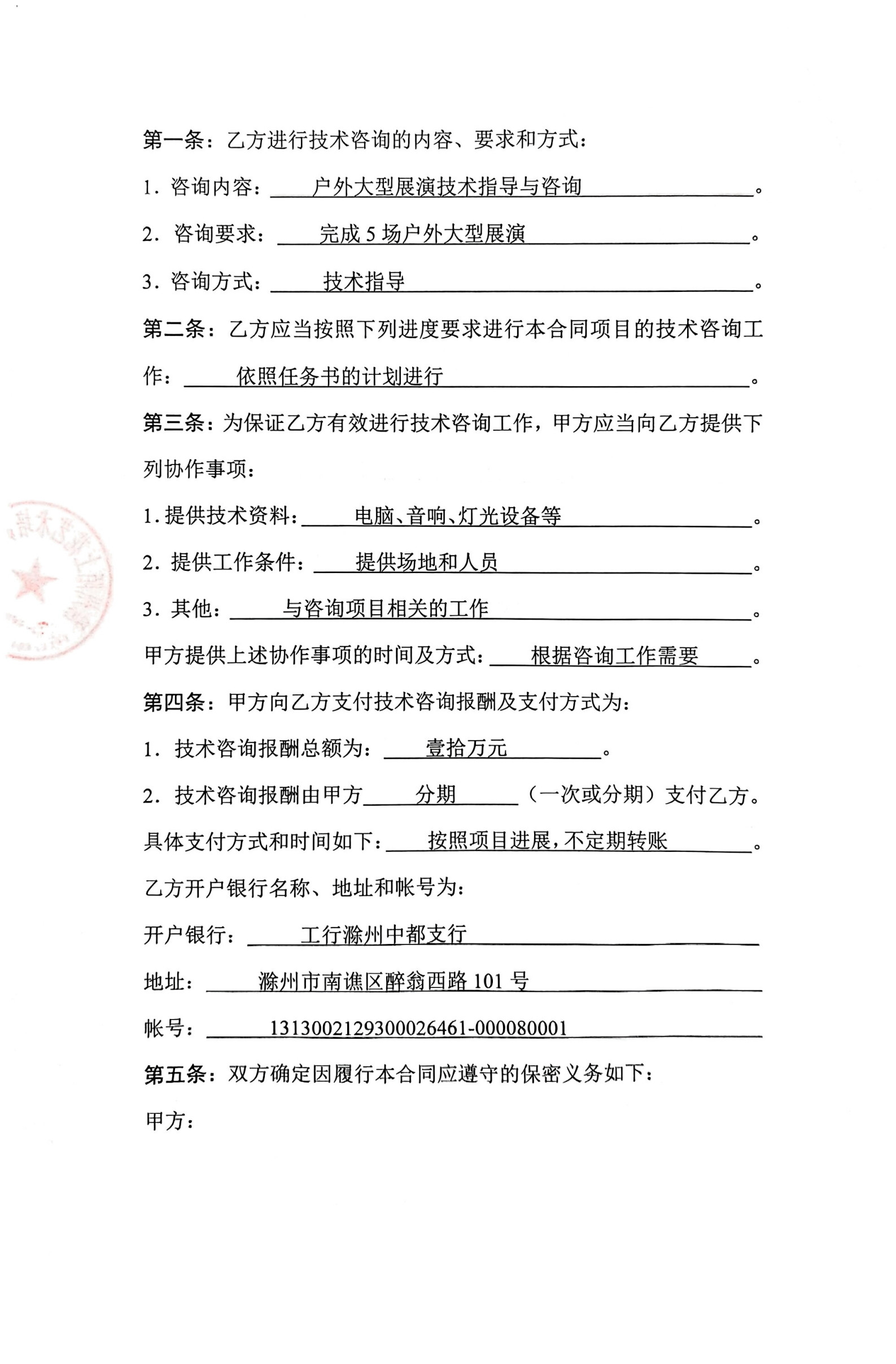 户外大型展演技术指导与咨询(夏军军横向课题)