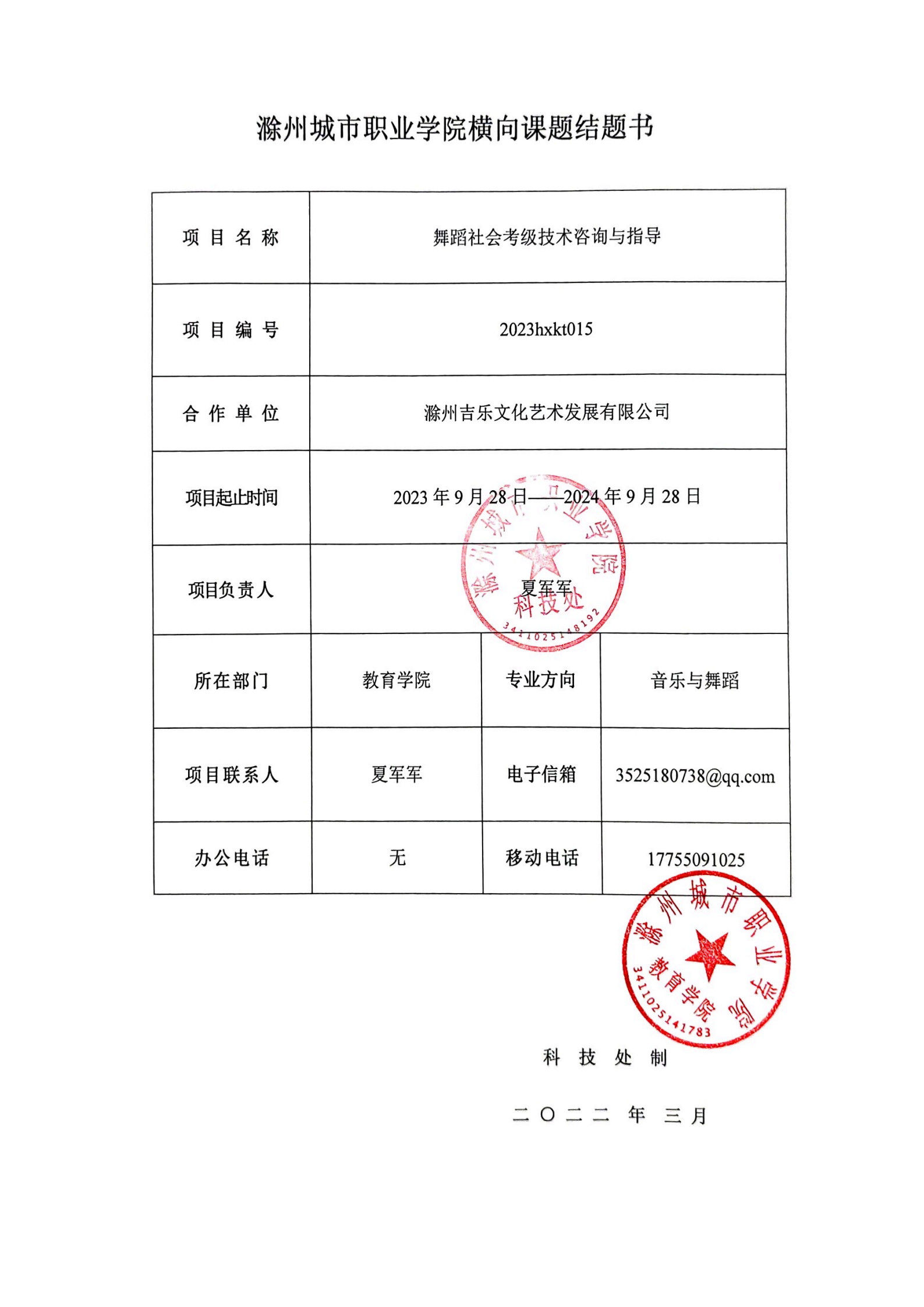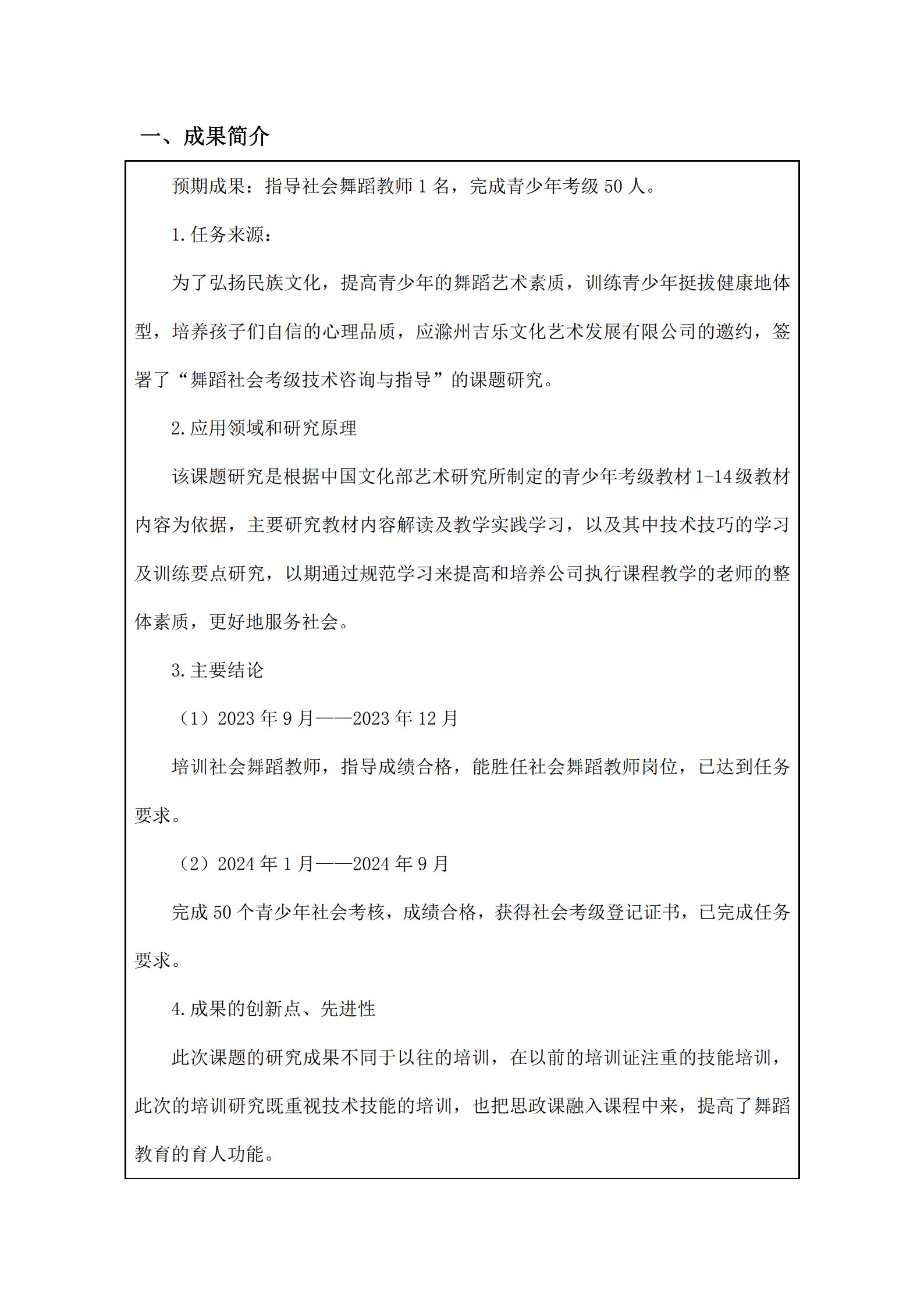 舞蹈社会考级技术咨询与指导(夏军军横向课题)
