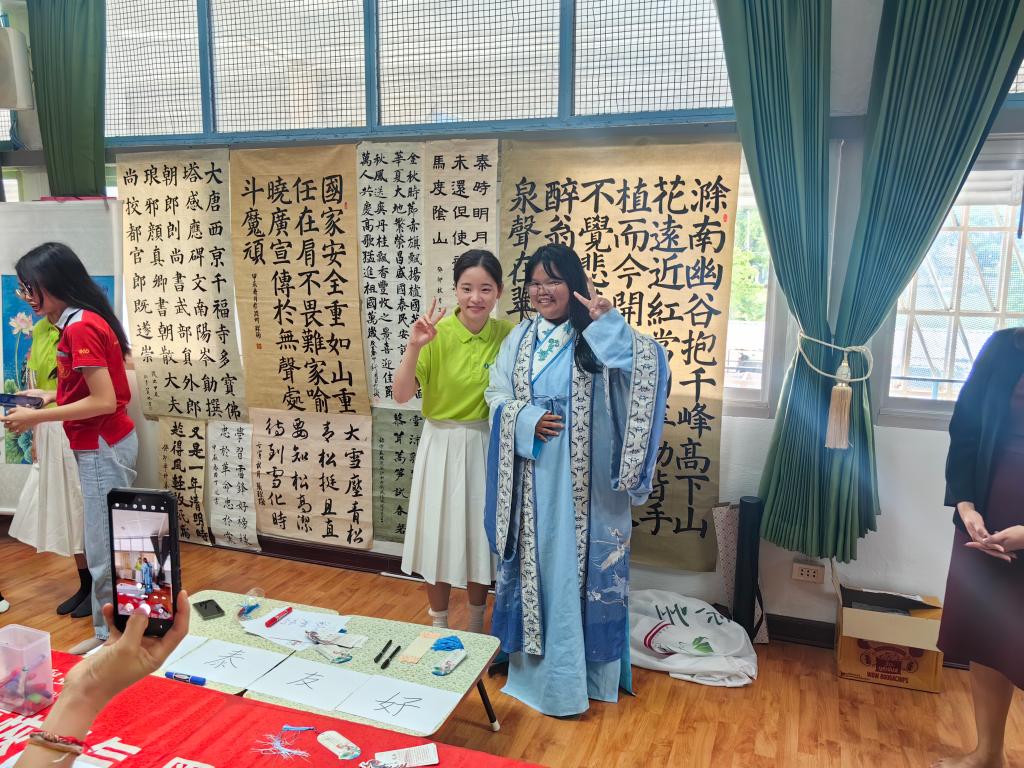 活动伊始,我院学子精心策划的书画作品展吸引了众多泰国师生的目光。展出的书法作品不仅包括了《醉翁亭记》《出塞》等中国诗词,还有对泰国师生的祝福语,展现了中国书法艺术的多样性与包容性。这些作品以其独特的艺术魅力,让泰国师生对中国书法有了更为直观的认识和感受。