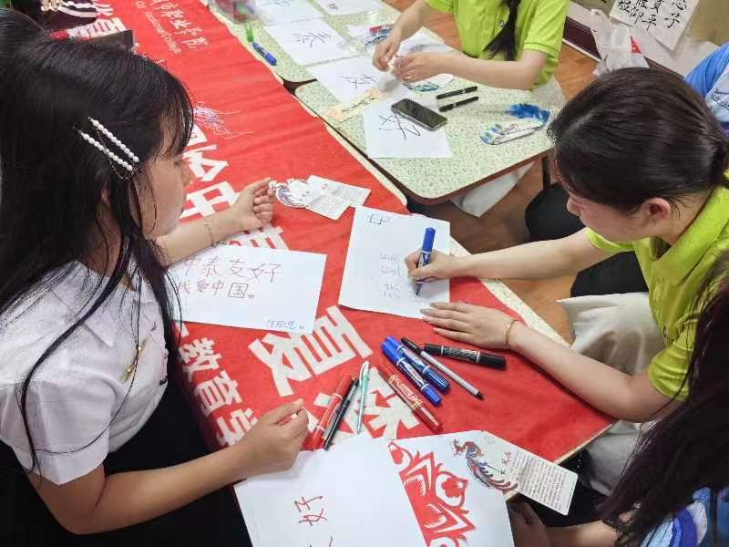 随后的硬笔书法教学活动,更是将现场气氛推向了高潮。我院学子手把手教授泰国师生书写“中泰友好”的硬笔书法,这不仅是一种技艺的传授,更是中泰两国友好情谊的象征。通过书写,两国师生共同体验了汉字的美感和书法的韵律,加深了对中国文化的理解和认同。