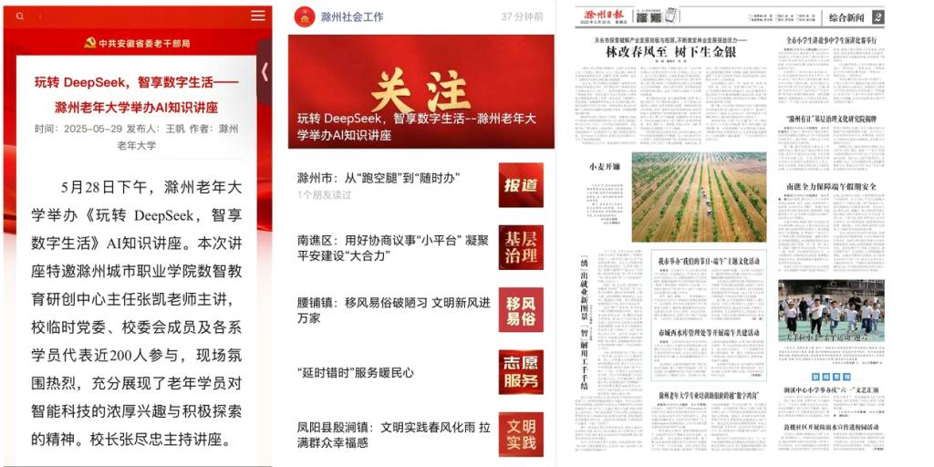 为积极践行高校服务社会的责任担当,推动优质教育资源“走出去”,助力老同志“老有所学、老有所乐、老有所为”,5月28日下午,久久久一区二区三区|亚洲精品一区二区三区不|久久av网|精品国产一区二区三区久久久久久|午夜精品av|久久久久久久久久久久久久av|日韩亚洲欧美综合教育学院张凯老师应邀走进滁州老年大学,为近200名老年学员开展主题为《玩转DeepSeek,智享数字生活》的AI知识讲座。此次活动是我院深化社会服务、响应“智慧助老”行动的生动实践。