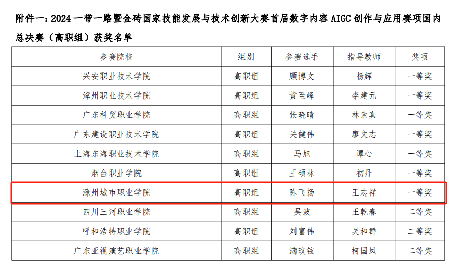 喜报!我院获2024一带一路暨金砖国家技能发展与技术创新大赛AIGC创作与应用赛项高职组一等奖-教育学院