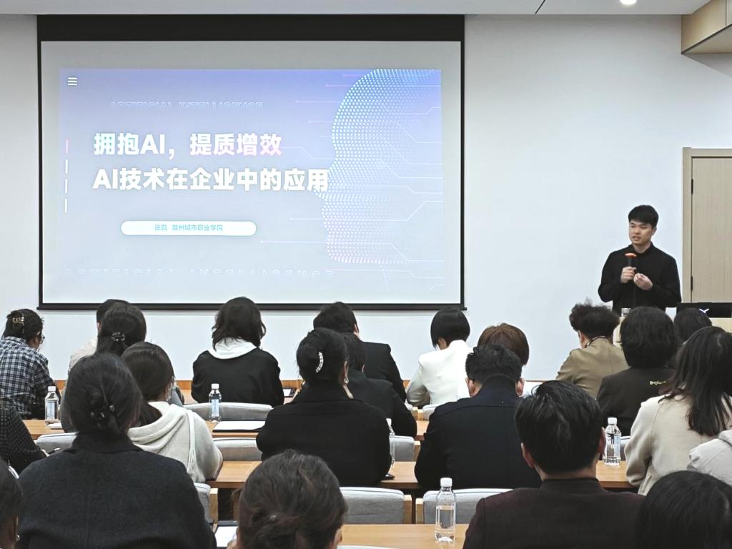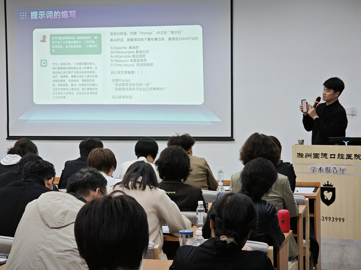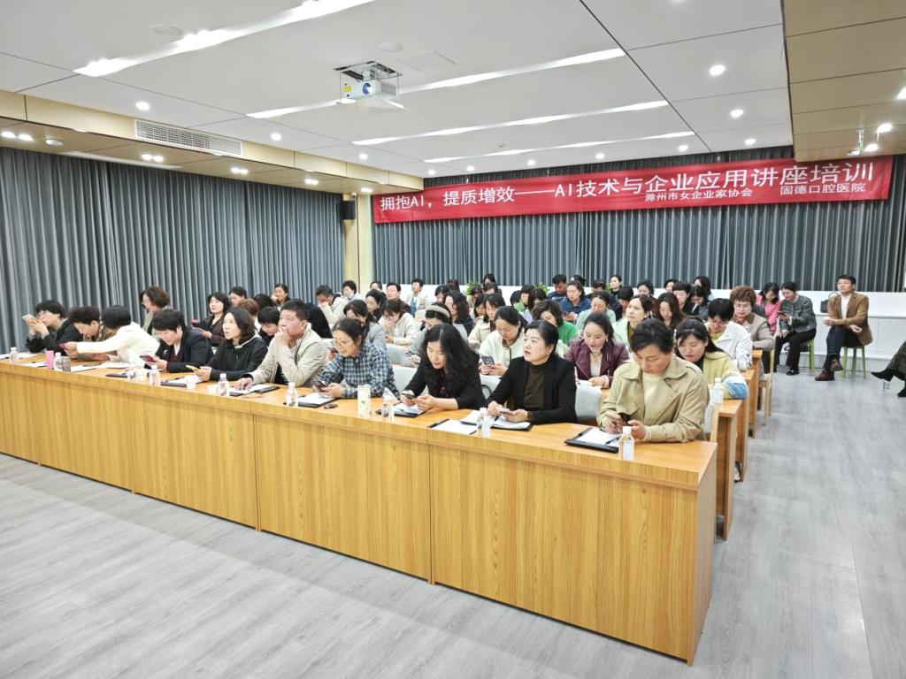 4月12日,滁州市女企业家协会联合固德口腔医院举办专题学术活动,邀请我校教育学院AIGC课程团队负责人张凯作题为《拥抱AI,提质增效——AI技术在企业中的应用》的专题讲座。本次活动由滁州市女企业家协会会长夏修琴主持,吸引了协会成员、企业管理者及技术骨干等近百人参会,共同探讨人工智能技术赋能企业发展的新路径。