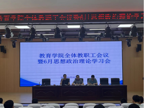 6月16日下午,教育学院在C2北报告厅召开了全体教职工会议暨6月思想政治理论学习会。教育学院党政班子成员及全体教职工参加会议,会议由党总支书记钱庆兵主持。