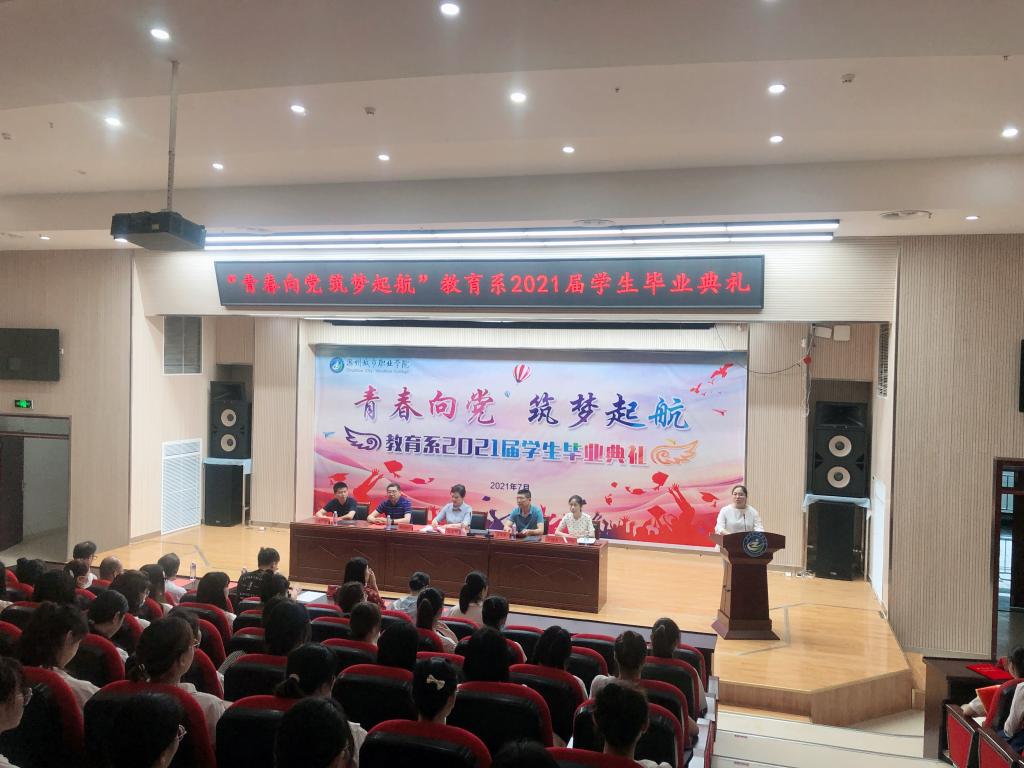 青春向党,筑梦起航。2021年7月7日上午,教育系2021届学生毕业典礼在图文中心四楼报告厅礼隆重举行。学院党委书记张志华出席典礼,教育系党政班子成员、教师代表、辅导员代表、187名毕业生代表现场一起见证这难忘时刻。毕业典礼由教育系党总支副书记徐立娟主持。