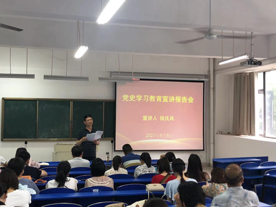 会上,钱庆兵从习近平总书记关于党的历史重要论述到党的百年光辉历程,深入浅出地讲解了党的光辉历程和历史性贡献,让大家对党的百年历史有了更加深刻的理解与认识,进一步增强了我系广大教职员工学史明理、学史增信、学史崇德、学史力行的积极性与主动性。