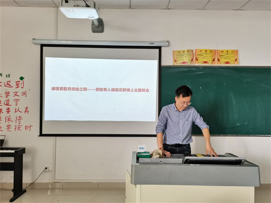 会上,杨维懂老师首先肯定了国家助学贷款政策为家庭经济困难学生带来的帮助,希望同学们珍惜个人信用记录,积极履行偿还贷款本息的义务,随时保持和学校、老师的密切联系,并特别提醒同学们需防止因工作忙碌而过失违约。其次,强调了诚实守信的重要性,同学们不能因为不能按时偿还贷款本息而进入征信黑名单。