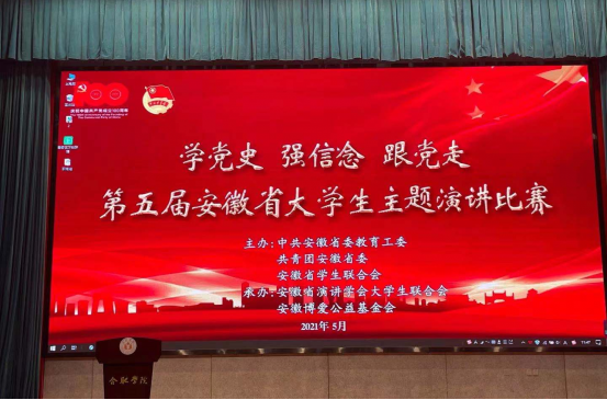 为庆祝中国共产党成立100周年,推进党史、新中国史、改革开放史、社会主义发展史学习教育,引导广大青年凝心聚力跟党走,建功立业新时代,为推进新阶段美好安徽现代化建设贡献更大力量,5月8日,由团省委、安徽省学生联合会、安徽日报社联合举办的第五届安徽省大学生主题演讲比赛复赛在合肥顺利举行。经过系部初选、学院选拔,来自我系19早教高专1班刘文君同学脱颖而出,代表学院参加此次主题演讲比赛。