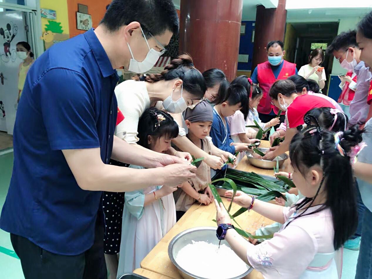 与此同时,在端午佳节来临之际,为了进一步弘扬中华民族传统文化,教育系党总支充分发挥我系专业优势,同丰乐社区工作人员深入丰乐社区所属幼儿园—滁州市第一幼儿园开展传统节日文化宣传志愿服务活动。在志愿者、社区工作人员和幼儿园老师们的细心指导下,小朋友们制作出了漂亮的五彩绳、五颜六色的创意彩蛋和饱满的粽子,在实际行动中更加直接地体会了端午文化。此外,志愿者们还向小朋友们讲述了端午节的历史由来,进一步加深了小朋友们对传统节日的认识。
