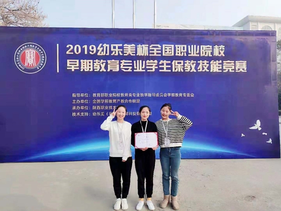 为期三天的2019年“幼乐美杯”全国职业院校早期教育专业学生保教技能竞赛于2019年12月22日在古城西安圆满闭幕。此次大赛由教育部教育类专业指导委员会学前教育专业委会指导、全国学前教育专业产教合作联盟主办、陕西职业技术学院承办、北京幼乐美教育技术有限公司技术支持的一项全国性赛事,共有来自全国26个省、自治区、直辖市的69支参赛院校的207名优秀学生参加。我系17级早教专业席玉蝶、李玲、丁延洁三位同学代表我院参加此次大赛,经过激烈角逐,我院代表队从众多选手中脱颖而出,获得了全国三等奖的好成绩(全国排名35,安徽省同类院校第二名)。