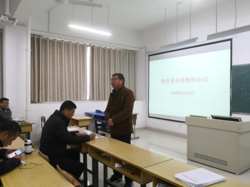 2019年12月9日下午16:20,教育系在C1南304教室召开全体教师会议,会议由系主任高国柱主持,教育系党总支书记钱庆兵、副书记陈之娟以及教育系及全体教职工参加了会议。