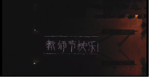 9月8日晚,在第35个教师节来临之际,教育系组织300多名学生参与庆祝教师节的“快闪”活动。迈着整齐的步伐,喊着洪亮的口号,在校南广场上,教育系的同学们情绪高涨,挥舞着手机,点亮了校园的夜空。随后,同学们错落有致,动作利落地利用身体摆出了“教师节快乐”巨幅字样,以此来表达对全体教师节日的祝福,感谢老师无私辛勤的付出,同时也表达出对自己未来“为人师”的祝愿。