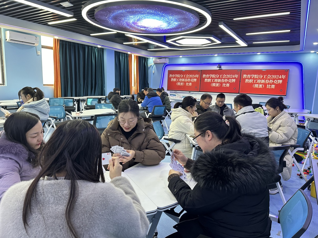 为丰富教职工节日文化活动,促进教职工之间的沟通联谊,1月26日,教育学院分工会举办教职工迎新春扑克牌(掼蛋)比赛,教师们积极参与,踊跃报名。